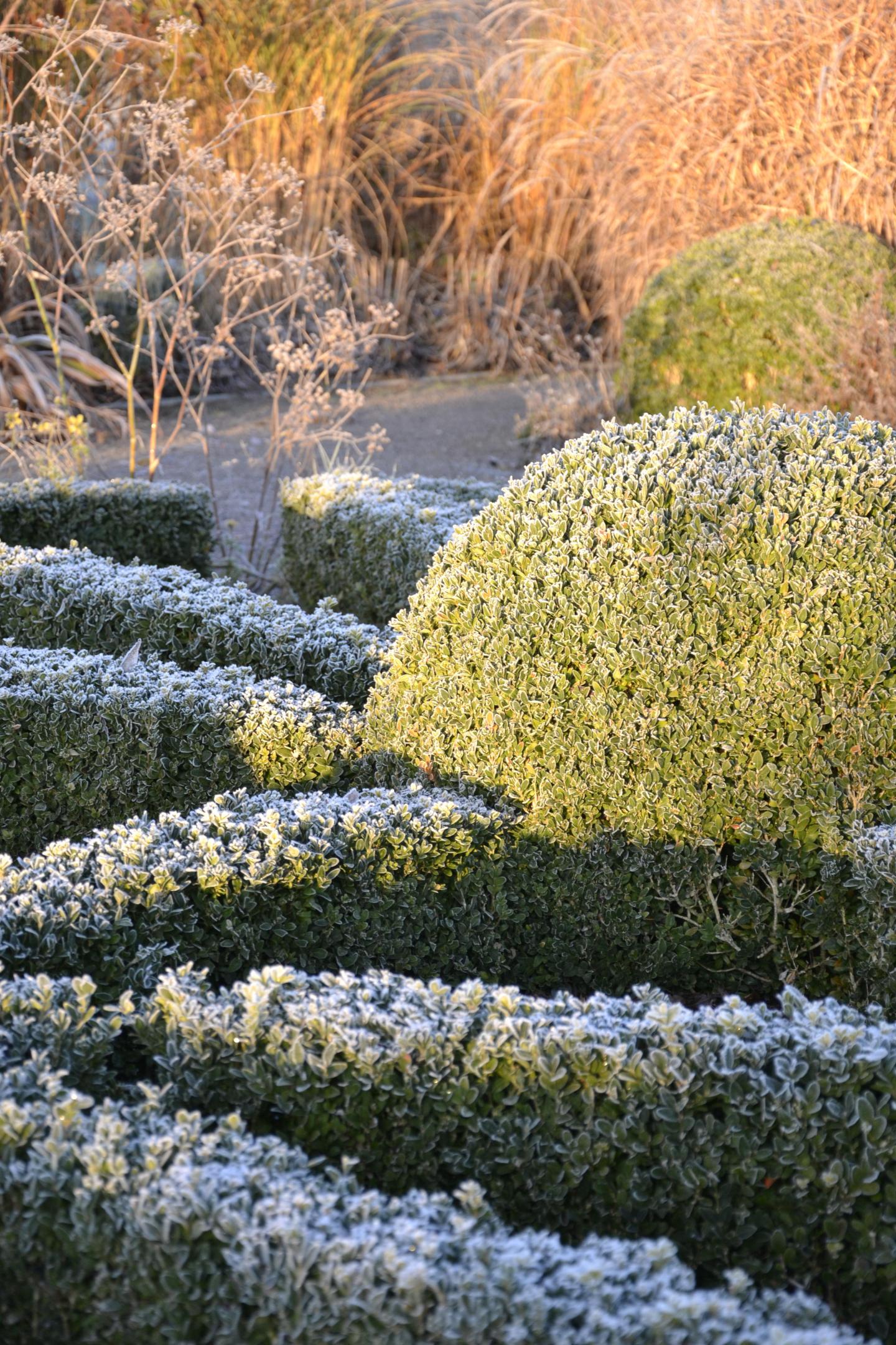 Les jardins sommeillent sous une fine couche de givre. Seules les taupiaires, restées vertes et garnies se détachent du blanc alentour. Promenez-vous en toute quiétude et sérénité dans les jardins endormis et calmes du château d’Hardelot. Faune et flore ont pris leur quartier d’hiver et se préparent doucement pour l’arrivée du printemps.